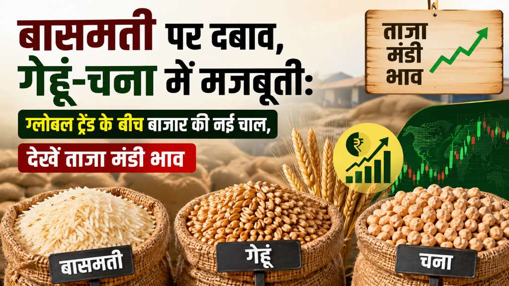 बाजार में बड़ा उलटफेर! बासमती चावल कमजोर, गेहूं और चना ने पकड़ी रफ्तार।